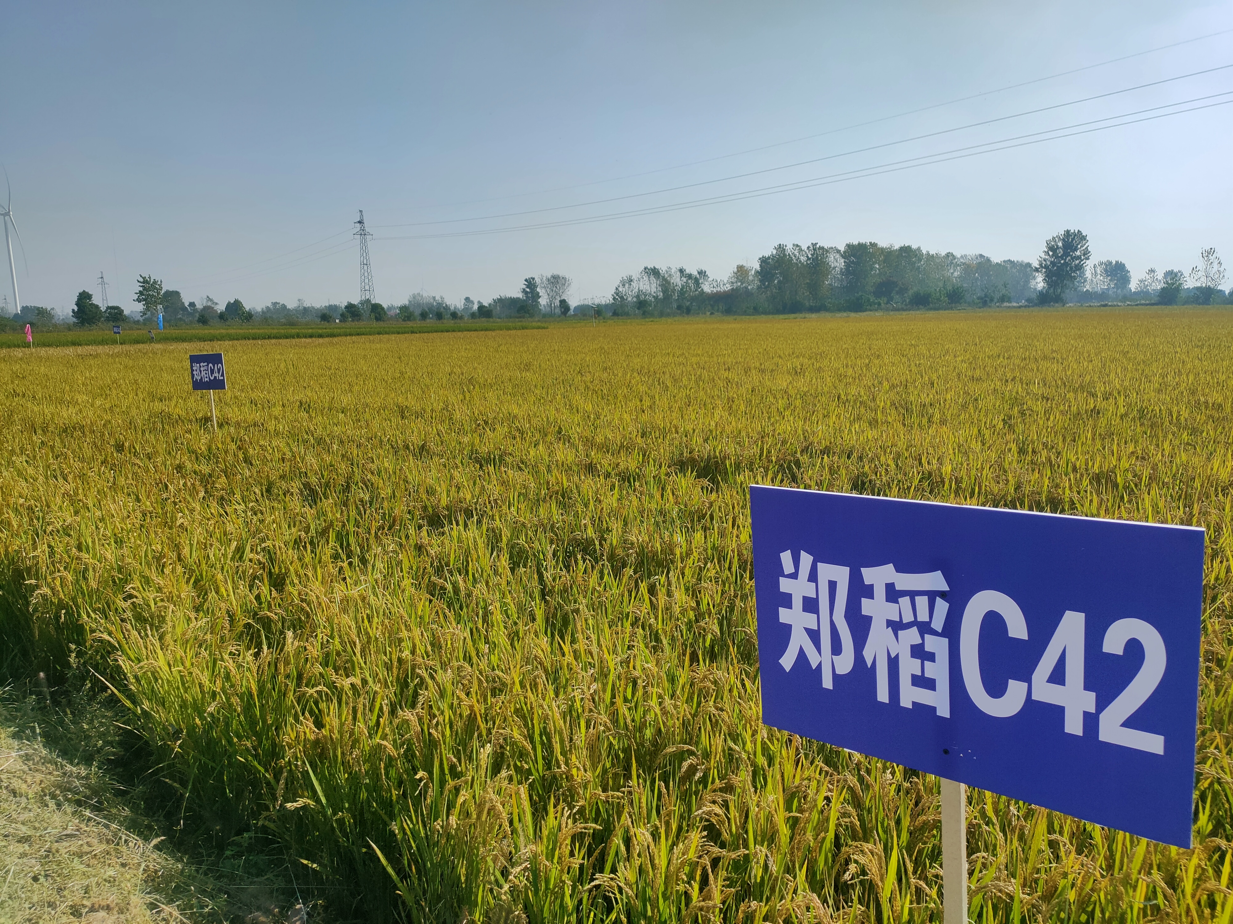 郑稻C42是省水稻产业技术体系首席专家、省农科院研究员尹海庆团队培育的水稻新品种。团队成员、省农科院粮作所水稻室主任王亚介绍说,郑稻C42是省农科院粮作所选育出的优良食味香型粳稻新品种,2022年通过河南省审定。这个品种米粒晶莹透明,外观好,食味优,达优质食用稻品种品质2级标准,突出的特点是抗倒伏,产量高,适应性强,在豫南罗山、息县、淮滨、光山及豫北原阳、濮阳等地都有种植。示范推广3年来,一般亩产均在600公斤以上,高产田每亩可达700公斤以上。