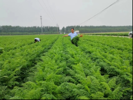 在位于南乐县元村镇古寺郎村的尚农胡萝卜种植专业合作社示范基地,河南省农科院蔬菜所指导了“机械化起垄+种绳+滴灌带”一体播种、拱棚覆盖、叶面肥喷施、水溶肥滴灌、病虫草害绿色防控、机械化采收等技术措施,春胡萝卜已进入收获期邀请专家对引进的春胡萝卜品种进行现场测产,商品亩产量达到4685公斤,亩产值5600春胡萝卜新品种产量高、效益好,利用拱棚覆盖可提早播种,比露地胡萝卜提早上市约20天,实现良种良法配套,取得了较好的经济、社会和生态效益。