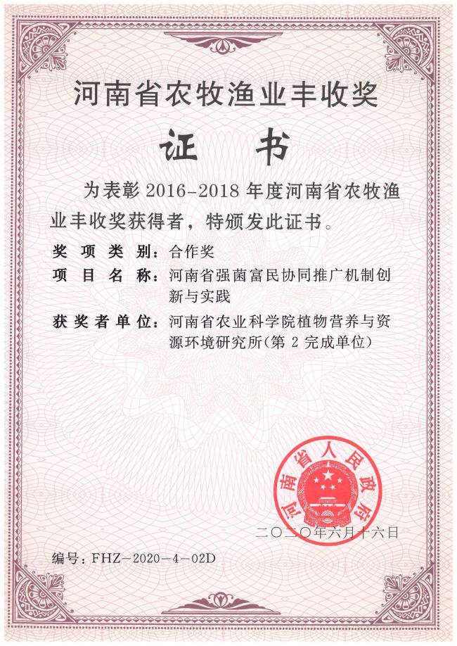 河南省农牧渔业丰收奖FHZ-2020-4-02D