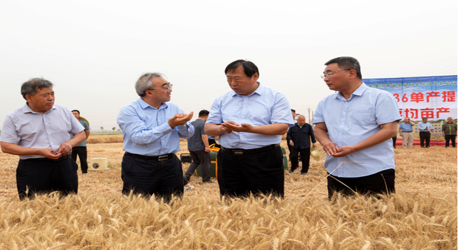 与会人员观摩了我院培育的郑麦136、郑麦918、郑麦1905等小麦品种展示田,并共同验证了郑麦136实打测产现场,此次观摩会展现了河南省农科院院县共建的丰硕成果,促进了农业增收、农民致富,为保障国家粮食安全和乡村振兴做出了积极贡献。