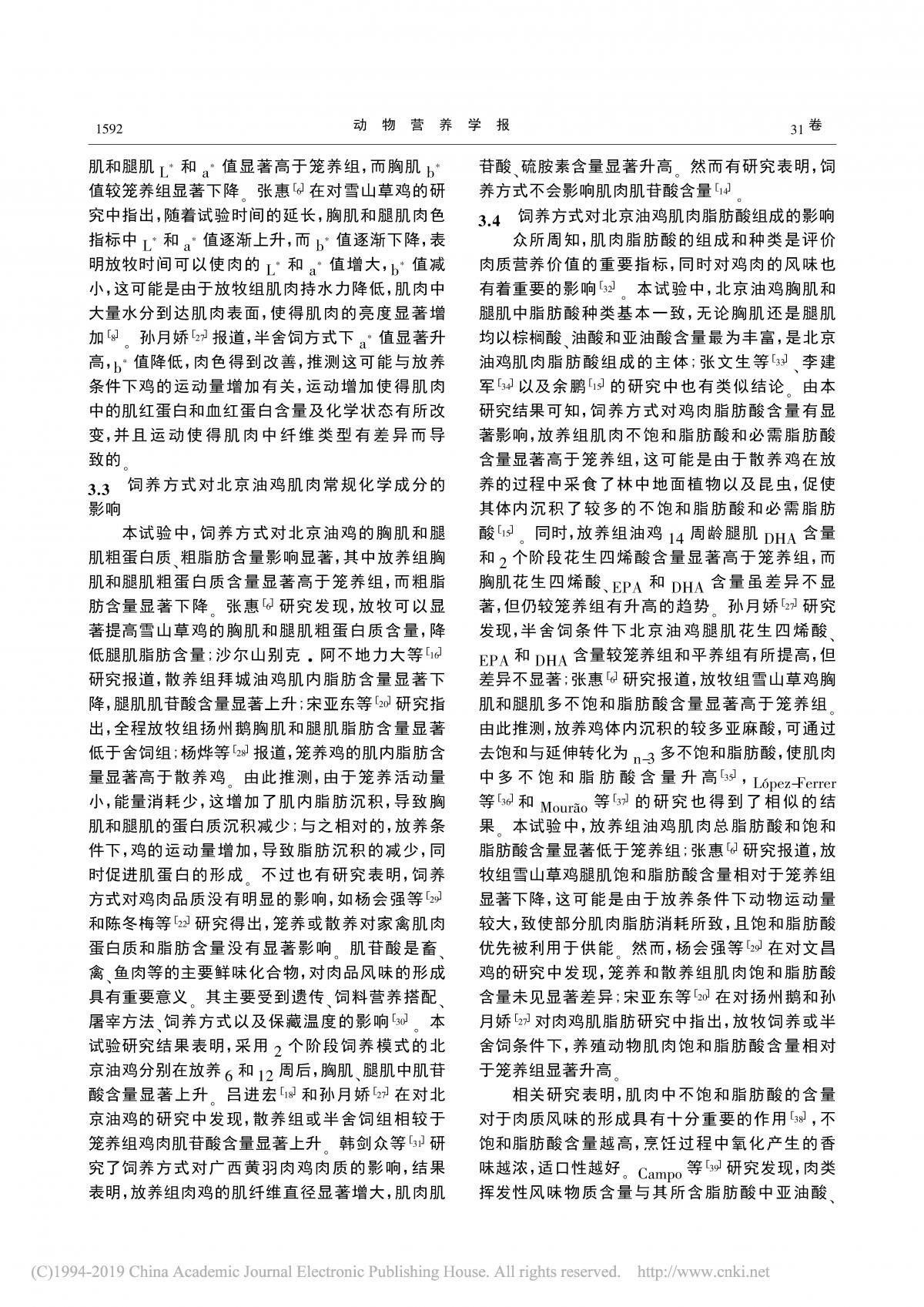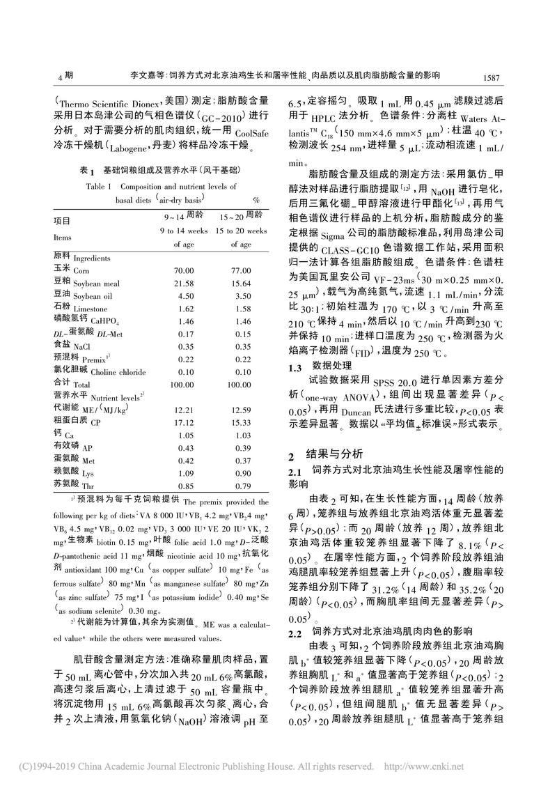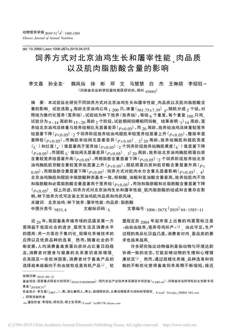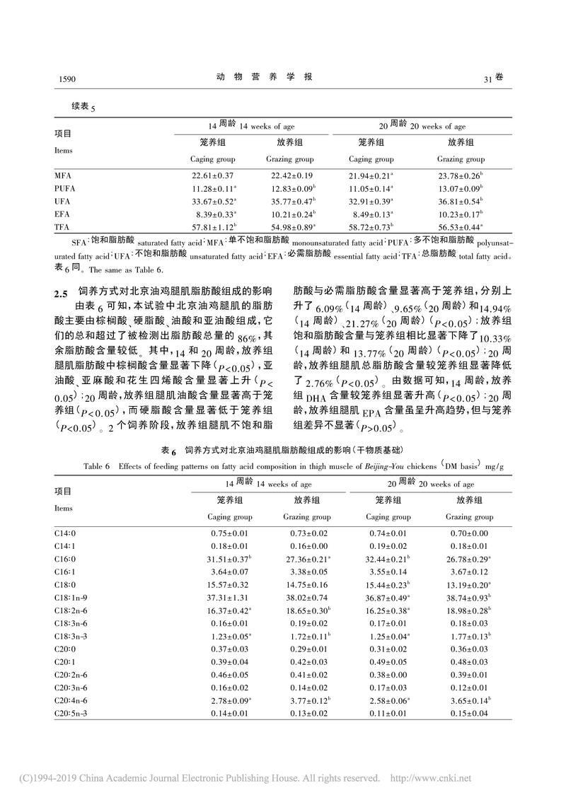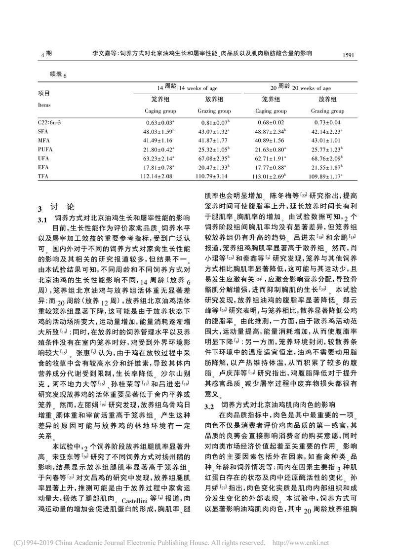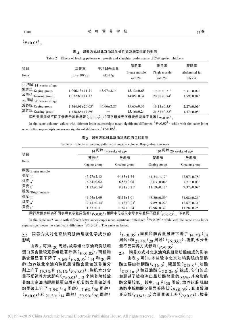 饲养方式对北京油鸡生长和屠宰性能_肉品质以及肌肉脂肪酸含量的影响