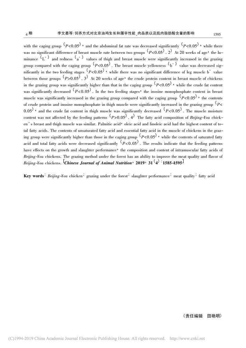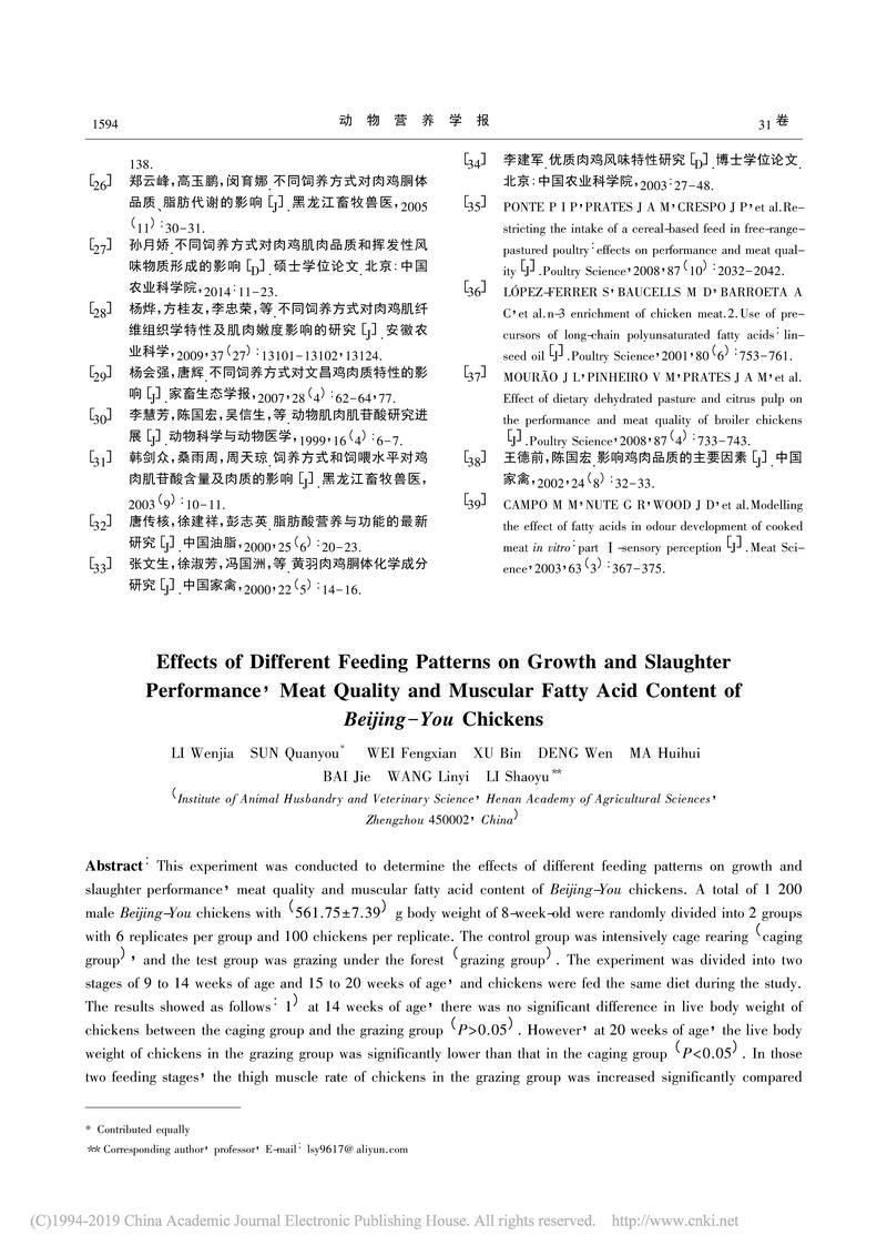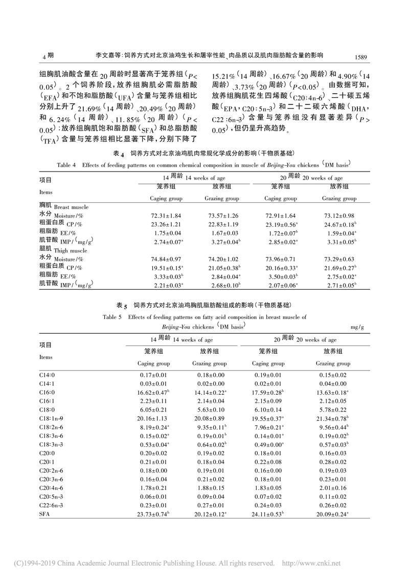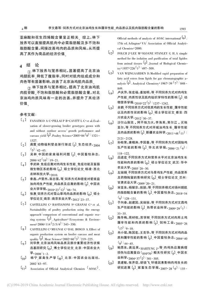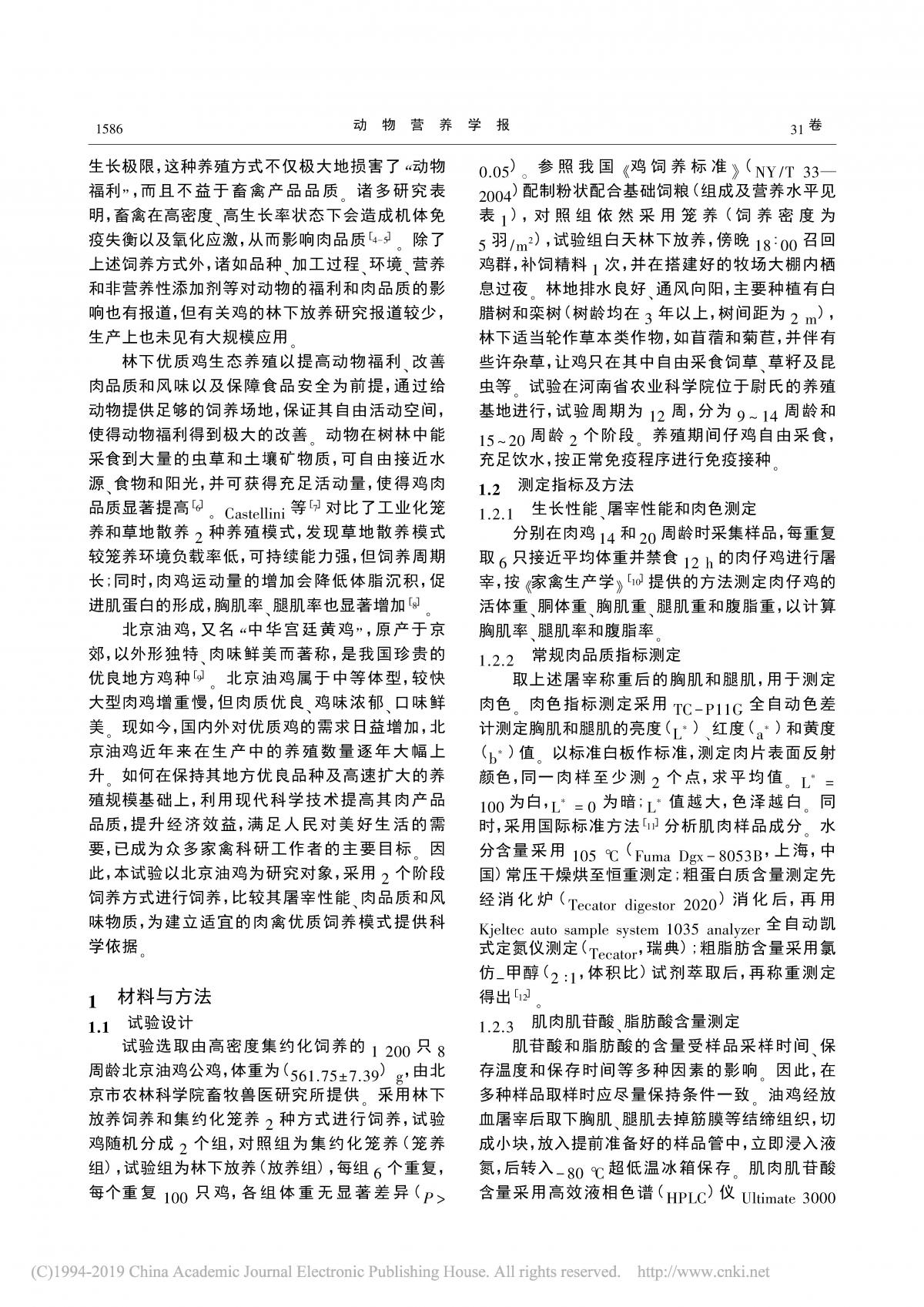 饲养方式对北京油鸡生长和屠宰性能_肉品质以及肌肉脂肪酸含量的影响