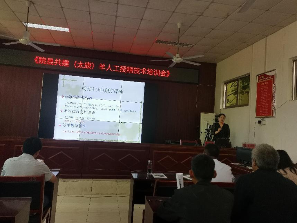 为进一步推进养羊产业高质量发展,助力乡村振兴战略全面实施,5月15-16日,畜牧所养羊团队在太康县召开“院县共建(太康)种公羊站揭牌仪式与人工授精技术培训会”,团队负责人辛晓玲博士、太康县农业农村局冯栋青副局长和葛峥嵘股长、河南省养羊协会徐泽君会长、河南省畜牧技术推广总站王献伟科长、河南省畜牧规划设计院王学君副院长、周口市农业农村局刘建中总畜牧师参加了培训会和揭牌仪式,周口市、太康县基层畜牧人员相关肉羊养殖场(户)共计90余人参加了培训会。