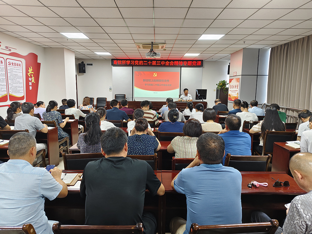 9月9日,我所开展学习贯彻二十届三中全会精神专题党课,闫祥洲所长以《新征程上的纲领性文件》为主题,带领全所职工认真系统的学习了《中共中央关于进一步全面深化改革、推进中国式现代化的决定》全文内容。