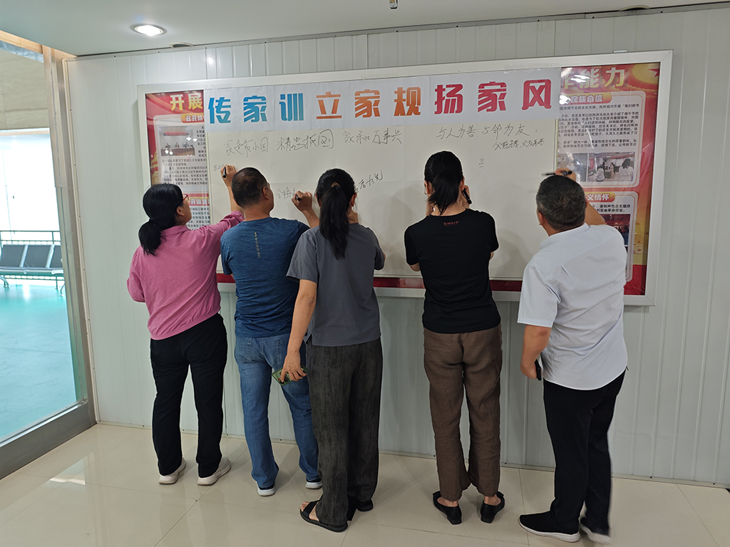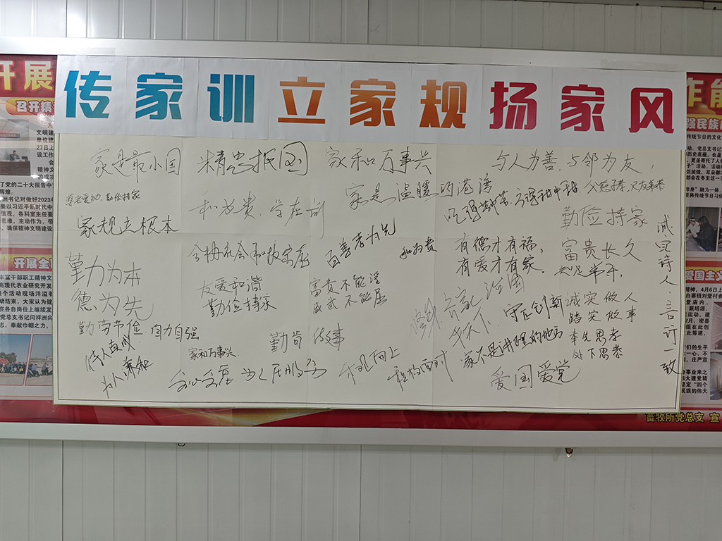 活动现场,闫祥洲所长向大家讲解了传承良好家风家训的重要性和家训、家规、家风对家庭、工作的深远影响,家庭美德的传承要从自身做起,言传身教。接着,大家踊跃地将对家训、家规的认知和感悟书写在宣传栏上,以此传递积极向上的家风和价值观。