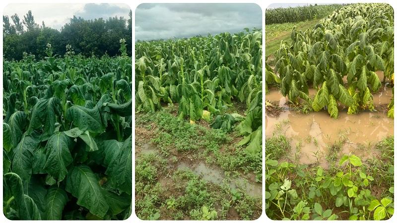 近日,襄城县多地出现暴雨甚至大暴雨,累计雨量大,持续时间长,造成农田泽涝等气象灾害。襄城县汾陈镇连续大量降雨,烟田或低洼区出现积水,土壤水分饱和,烟株长时间泡水,根系缺氧坏死,烟株叶片萎蔫,对烟叶生产造成减产或绝收。