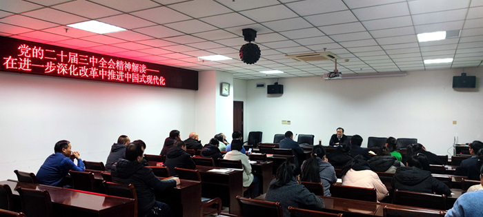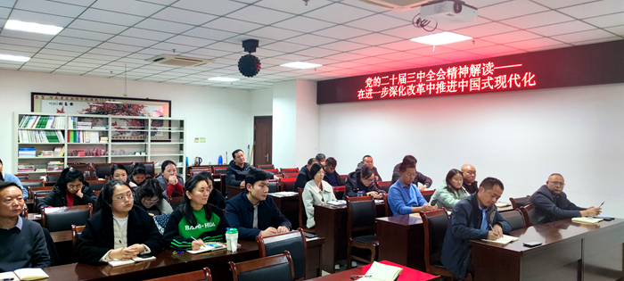 为深入学习贯彻党的二十届三中全会精神,推动广大党员干部用全会精神武装头脑、指导实践、推动工作,12月5日下午,园艺所举行二十届三中全会精神专题宣讲培训,特邀中共河南省委党校(河南行政学院)党组成员、教育长丁素教授作专题宣讲。园艺所党员干部共计30余人参加本次培训。