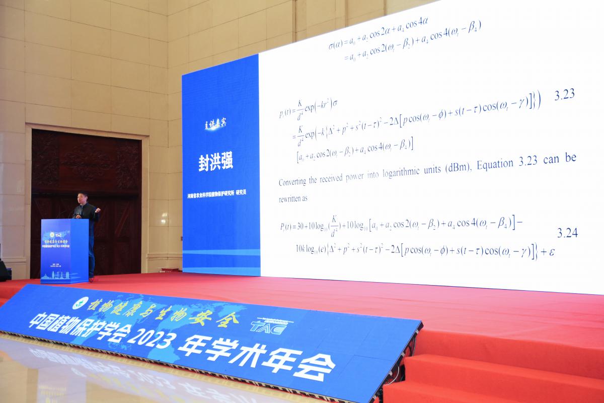 11月7日至8日,“中国植物保护学会2023年学术年会”在郑州市成功举办。本届年会由中国植物保护学会主办,我所联合河南农业大学植物保护学院、河南省植物保护检疫站承办。中国工程院院士、中国植物保护学会党委书记、理事长陈剑平致开幕词。河南省政协副主席朱焕然,中国工程院院士、我院院长张新友,中国农科院植物保护研究所所长陆宴辉出席开幕式并致辞。我所所长封洪强在大会主会场做特邀报告。来自全国植保行业800余名科技工作者参加了此次学术年会。