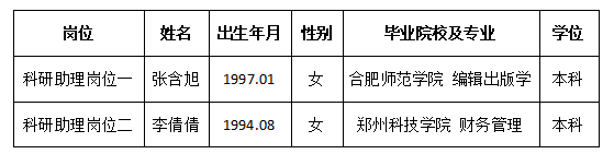 根据《24足球直播编外聘用人员管理暂行办法》规定,经过统一报名、资格审查、个人PPT汇报及考察等环节,根据面试成绩总排名,拟聘用各岗位成绩第一的2人为科研助理,现予以公示。