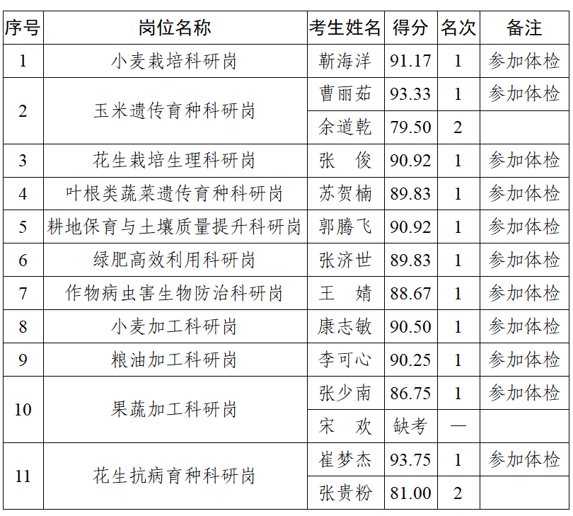 体检人员名单根据面试成绩由高分到低分的顺序,按照招聘岗位人数的1:1的比例确定。请参加体检人员尽快向院招聘工作办公室提交三甲医院出具的体检报告,体检不合格的不再列入考察人选,另按总成绩从高分到低分顺序依次递补。